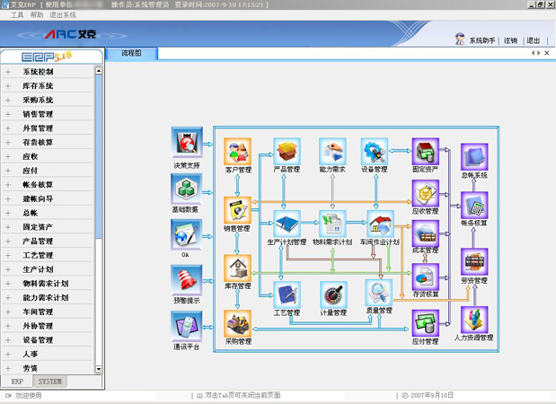 艾克 ERP 是艾克公司面向中小型制造業(yè)推出的企業(yè)資源計(jì)劃綜合軟件管理系統(tǒng)。該系統(tǒng)基于MRP II 核心,實(shí)現(xiàn)物流、資金流、信息流、OA、報(bào)警、短信和通訊平臺(tái)的集成化管理。
